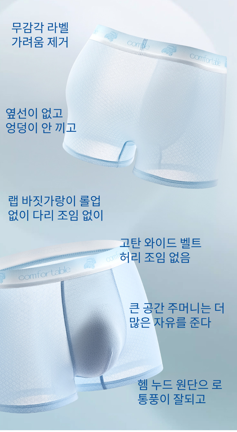 남성 쿨링 사각 항균 팬티 편안한 통기망 아이스 통기 디자인 사각 팬티 편안한 통기 아이스 팬티